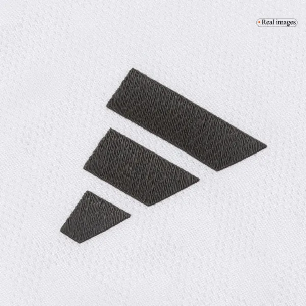 Just like Bellingham’s playstyle, this jersey is all about energy, vision, and precision. The design features a sleek white base complemented by yellow piping, light gray applications, and black logos. The yellow line running down the sides mirrors Bellingham’s flair and the versatility he brings to the midfield. The subtle gray striping along the cuffs and collar, as well as the light gray side panel, highlight the attention to detail and class that Real Madrid represents.Custom #5Bellingham Jersey: Get the player jersey with Jude Bellingham’s name and number, showcasing your support for one of the brightest talents in world football.