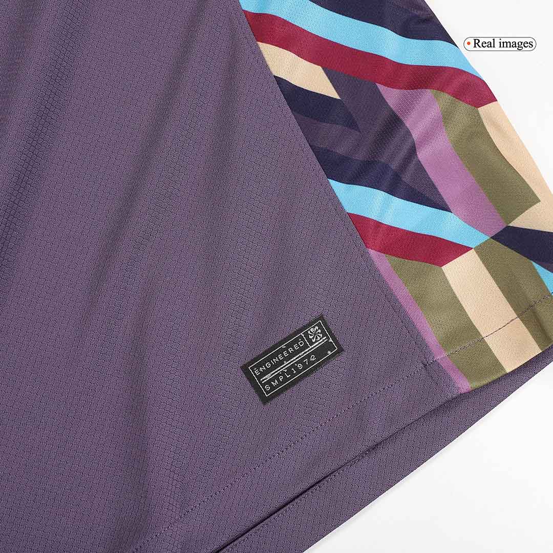 The new England away soccer kit Euro 2024 features a dark pale maroon with colorful side panels. There are seven different colours in the playful graphic side panels, with gold detailing on the brand and three Lions badge. The highlight of cheap England jersey EURO 2024 away is the multi-color design on both sides. There is a St. George’s Cross on the inside of the collar of England jersey in the same color as the side stripes. Although England jerseys, England authentic jerseys, and England long sleeve jerseys are replica jerseys, these jerseys are almost exactly the same as those on the official website. The fabric of England jerseys, England authentic jerseys, and England long sleeve jerseys are skin-friendly, smooth, breathable and light.