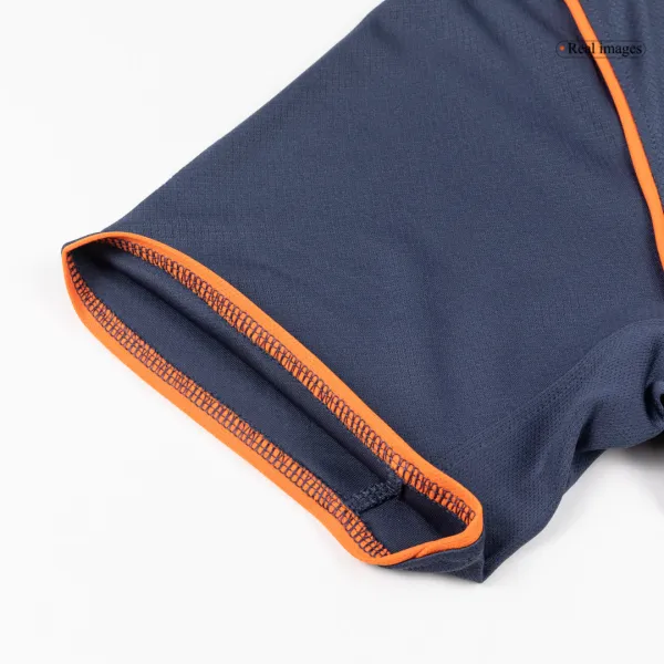 TheInter Milan third away Soccer Jersey 2025/26is more than just a shirt – it’s a perfect blend of tradition and innovation. Inspired by the legendary Nike Total 90 design of the mid-2000s, this kit brings back bold football fashion. The base comes inThunder Blue (steel navy), highlighted withSafety Orange logos and detailing, creating a striking contrast that commands attention on and off the pitch.
