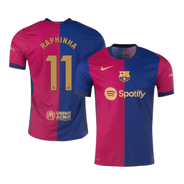 RAPHINHA #11 Barcelona Home Authentic Soccer Jersey – Spotify Logo Without Text